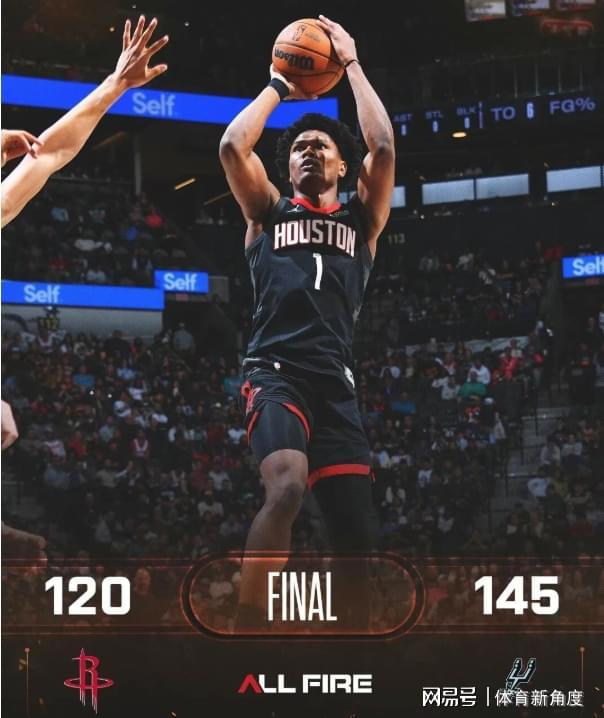 马刺4人20+三杀火箭,马刺145-120大胜火箭,文班亚马高效轰29分